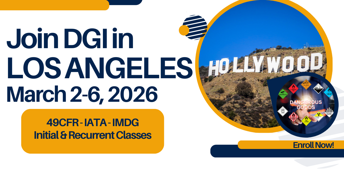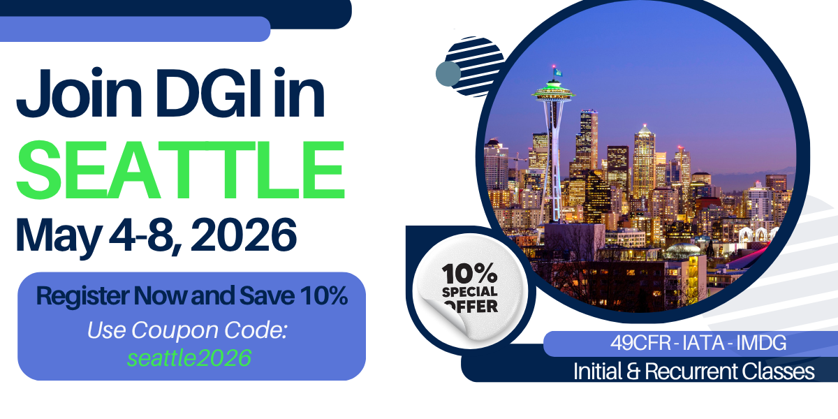All DGI Training Center seminars fulfill US DOT and International Law Training Requirements. For your convenience, we have listed our Dangerous Goods (Hazardous Materials) Transportation Seminar Schedule both by Mode of Transport (air, ocean, ground) and geographically by City.